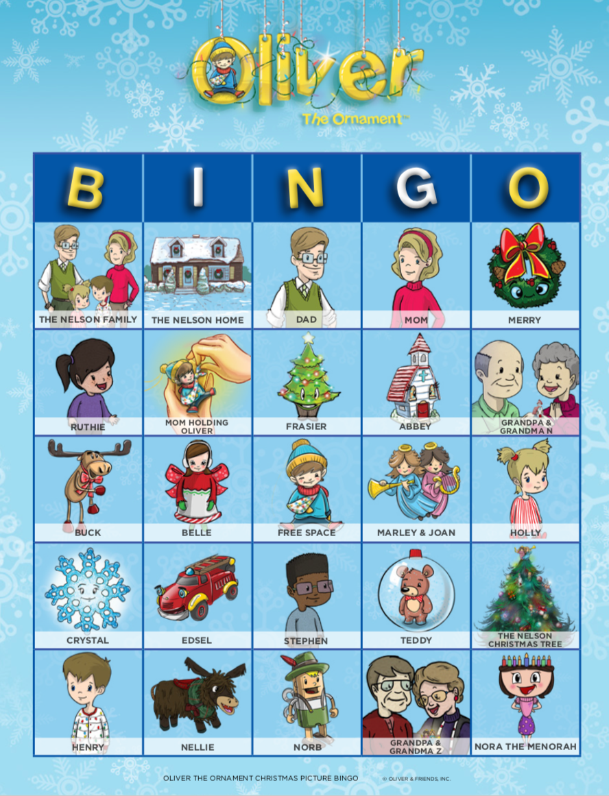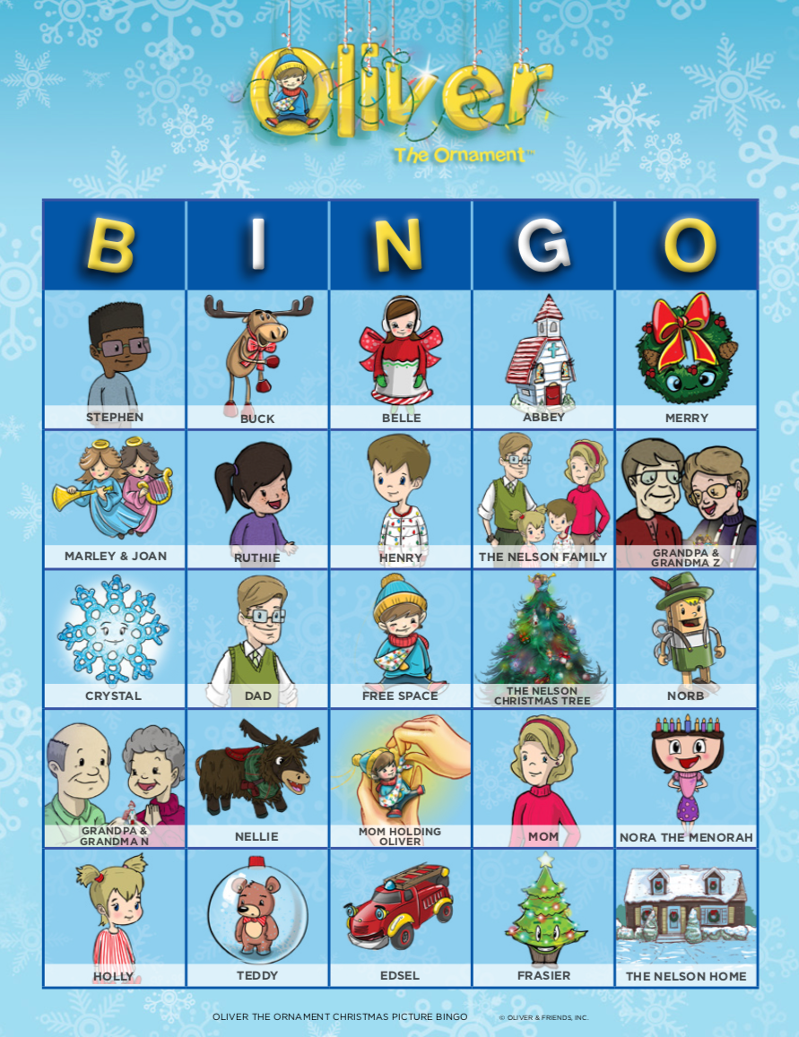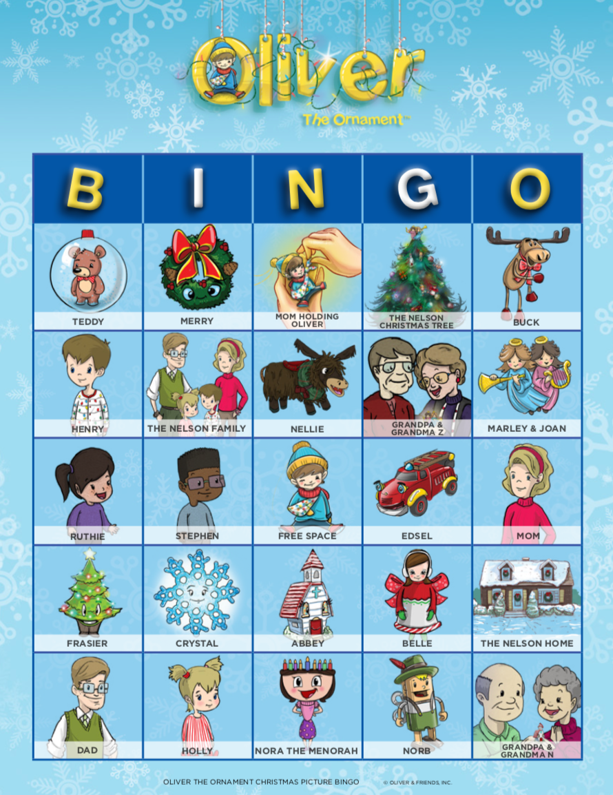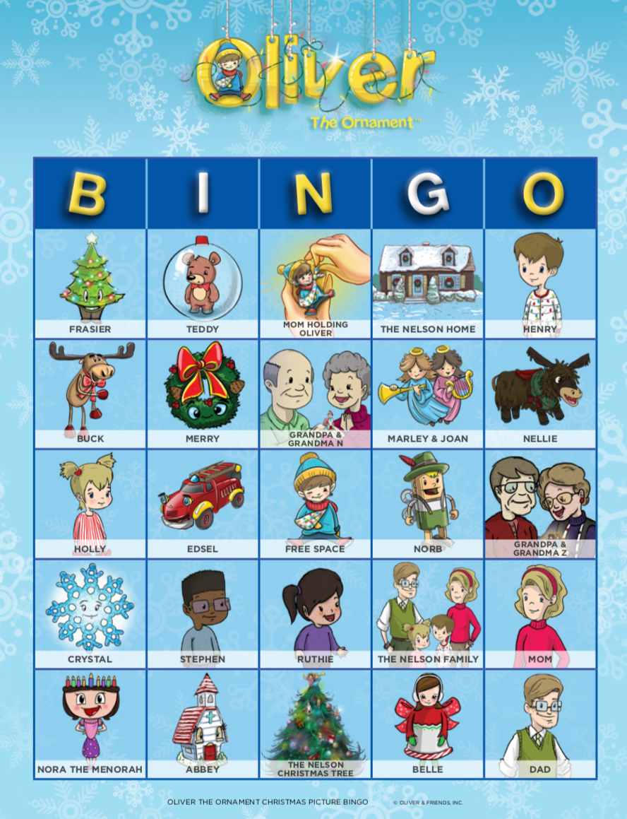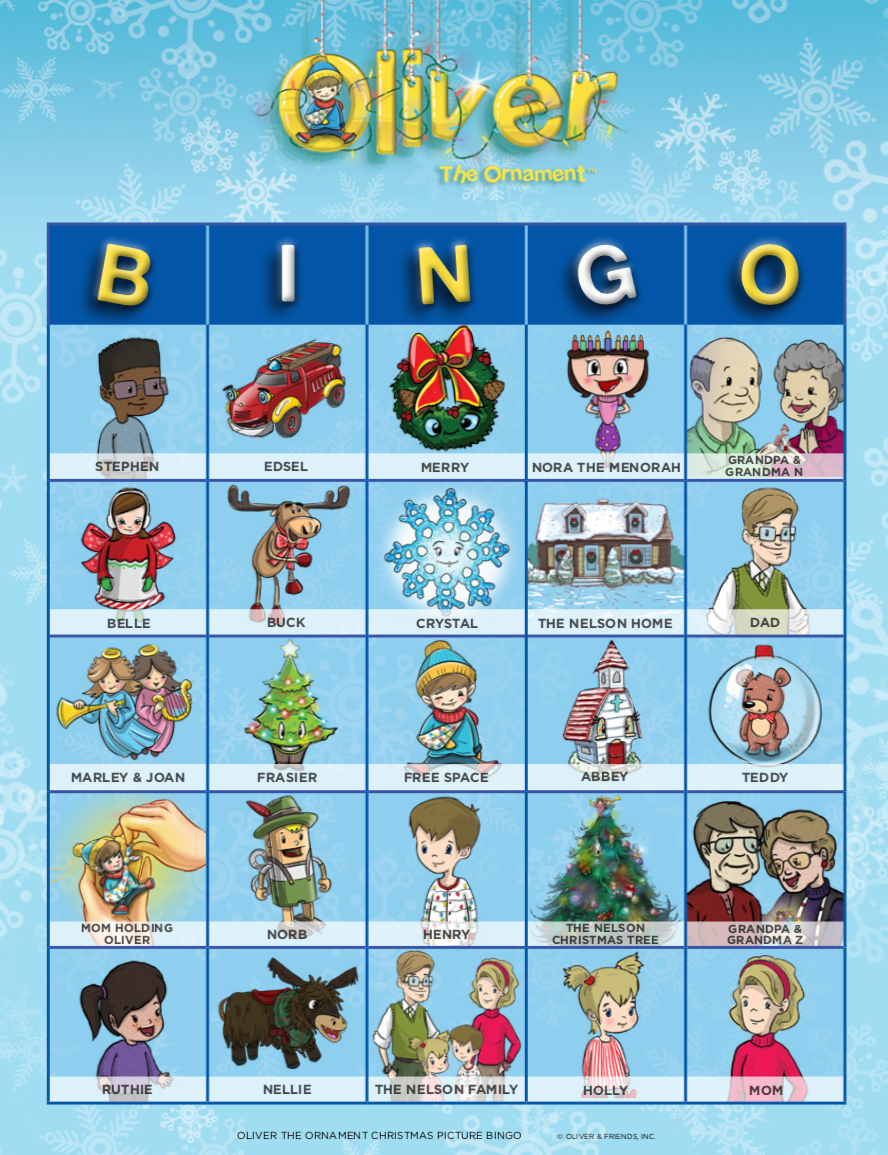 Oliver the Ornament Christmas Picture Bingo is the perfect holiday treat for your family. Upon purchase, you'll receive a downloadable game that features all of our favorite characters from the award wining Oliver the Ornament book series.