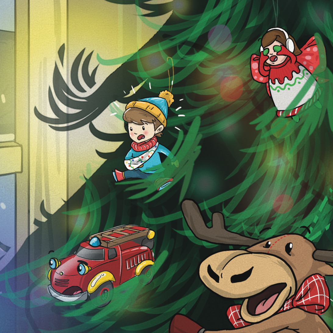 As our story unfolds, we find that Nellie, the naughty ornament left behind in the attic has not given up on spoiling Christmas for the Nelson family and all the ornaments. She’ll do her best to ruin Christmas, but just as she’s about to succeed, Oliver, with the help of his friends will save the day.