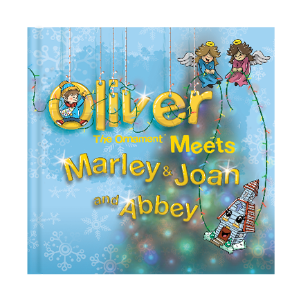 - Book #3 – Oliver the Ornament Meets Marley & Joan and Abbey – Sold as a hard-bound book with Marley & Joan and Abbey ornaments also available
