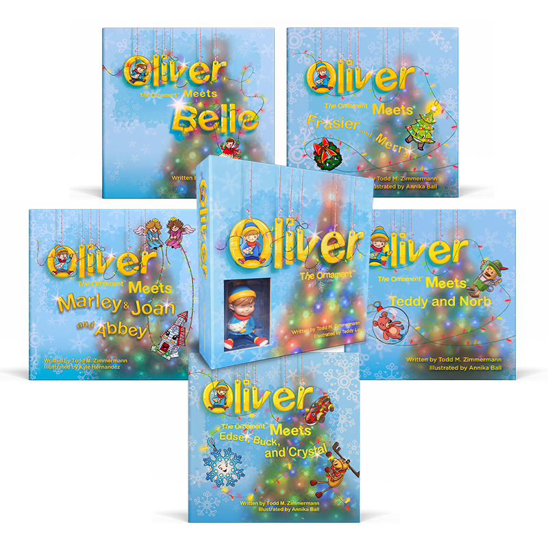 This is the collection of all seven of our books. The collection includes, Oliver the Ornament Gift Set, Oliver the Ornament Meets Belle Hard-Bound Book, Oliver the Ornament Meets Marley & Joan and Abbey Hard-Bound Book, Oliver the Ornament Meets Frasier and Merry Hard-Bound Book, Oliver the Ornament Meets Teddy and Norb Hard-Bound Book, Oliver the Ornament Meets Edsel, Buck, and Crystal, and Oliver the Ornament Meets...