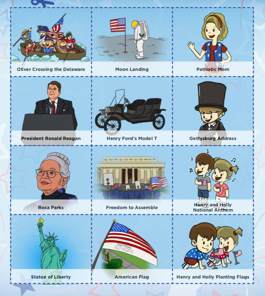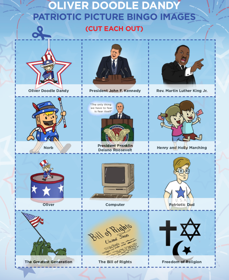 Bring the beauty of Oliver Doodle Dandy and America to life with this colorful game of Picture Bingo. Upon purchase, you'll receive your own PDF of the game which includes: